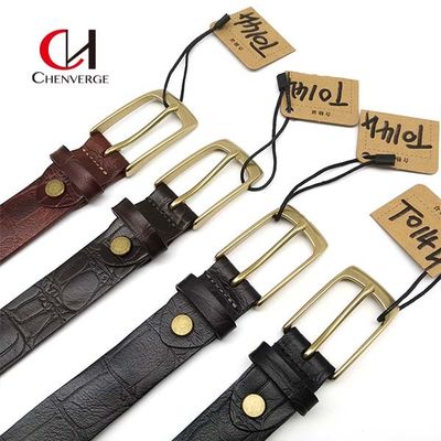 A curvatura de cobre 28mm puros do pino vergasta a correia de couro do teste padrão retro do crocodilo