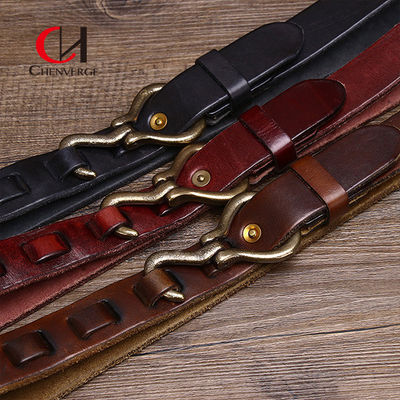 | Realçar | Cinturão de couro preto de alta durabilidade,Correia de couro genuína da curvatura liga de zinco |
